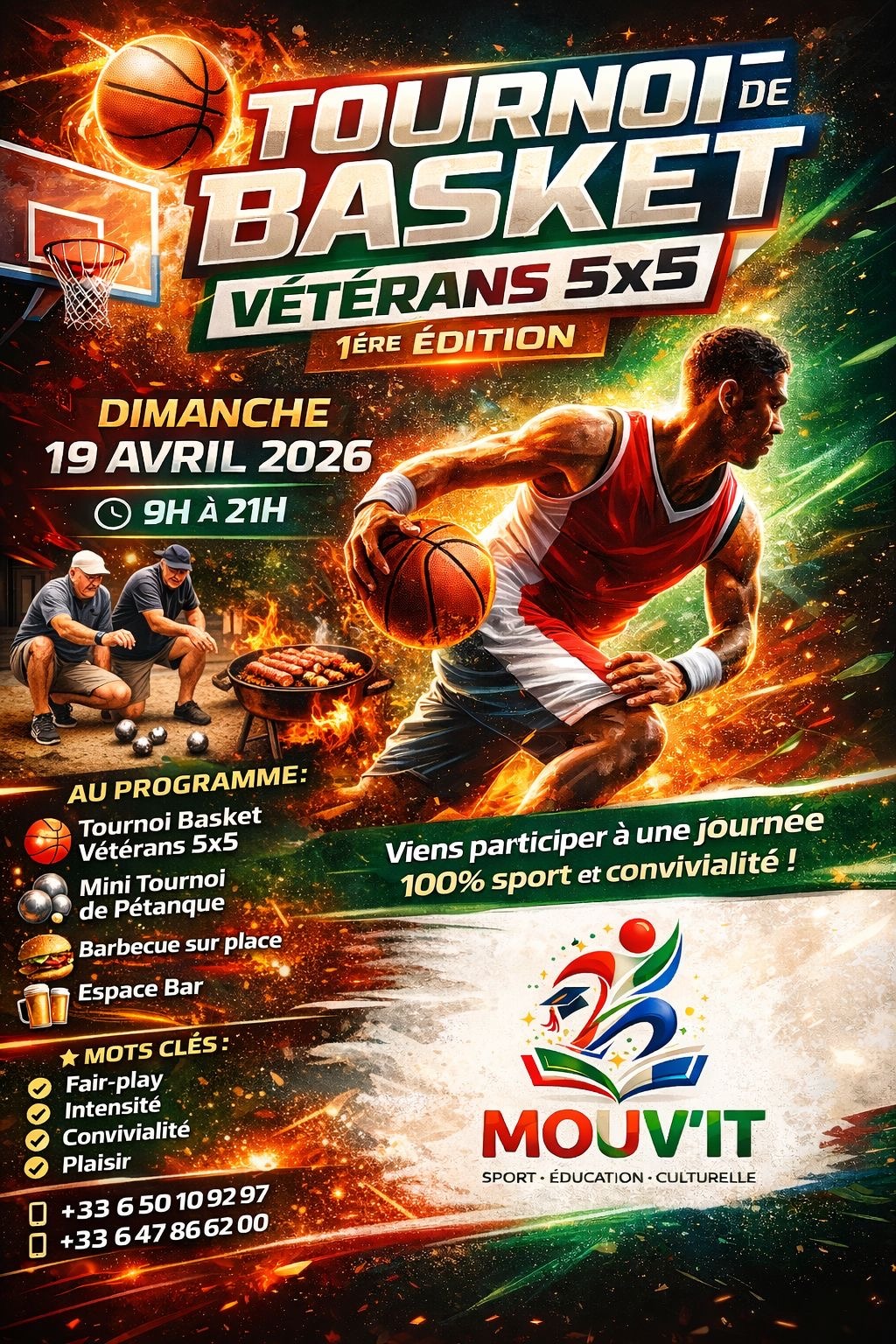 Au programme : basket et pétanque pour les vétérans, dans une ambiance conviviale à Juvisy‑sur‑Orge. En parallèle, nous organisons une collecte de vêtements et de chaussures de sport destinés aux personnes et clubs qui en ont besoin.